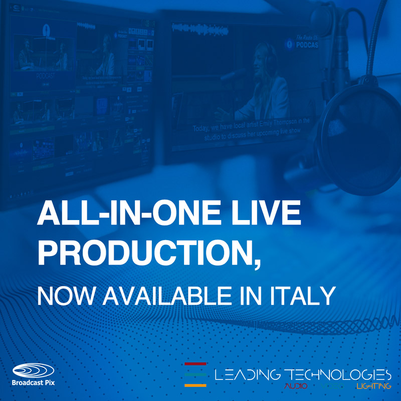 Tyngsboro, MA & Monza, Italy – October 2, 2025 – Broadcast Pix, a U.S.-based leader in live video production systems, captioning, and streaming solutions, has partnered with Leading Technologies, one of Italy’s foremost distributors of professional audio, video, lighting, LED wall, and software solutions. This partnership enables Broadcast Pix to bring its all-in-one, intuitive, and powerful production solutions to the Italian market.